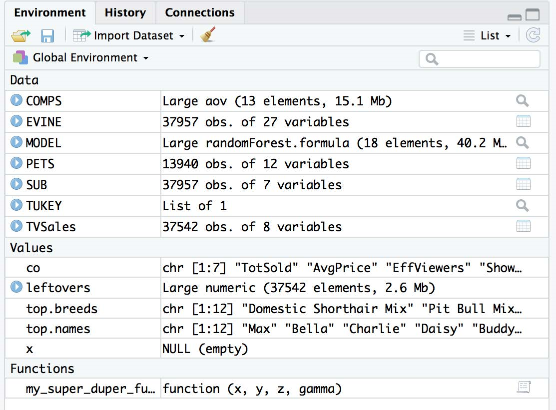 You’ll be using the \(load\) function on your first take-home exam, since I will have created a global environment of dataframes and functions unique to you that you will use.